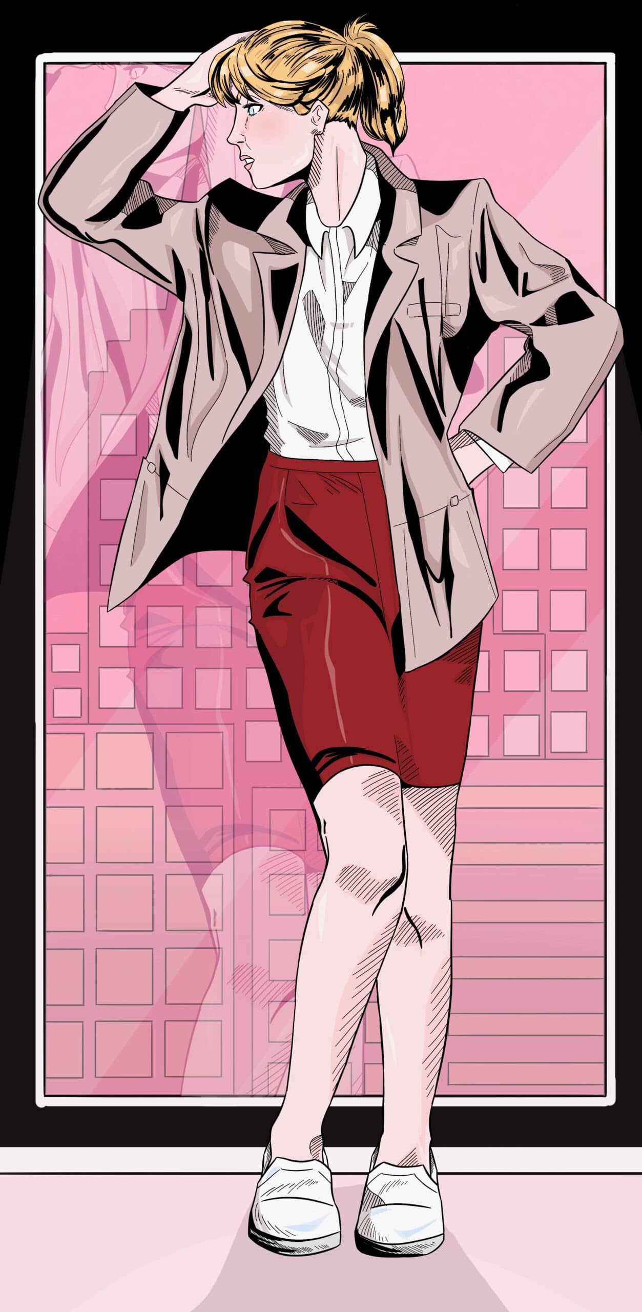I created this piece during my AP Art investigation about comic book art. I chose a digital medium since contrasting light and dark shading is neater digitally. I wanted to learn how to draw more casual outfits in the art style I was studying, specifically how to manipulate dark shading onto average clothes.