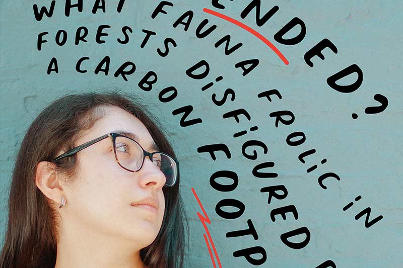 Accompanying photo: The author and an excerpt of her poetry were featured on bus stop posters to promote Climate Week in New York City in 2019. Courtesy of Climate Week NYC and The Climate Group.