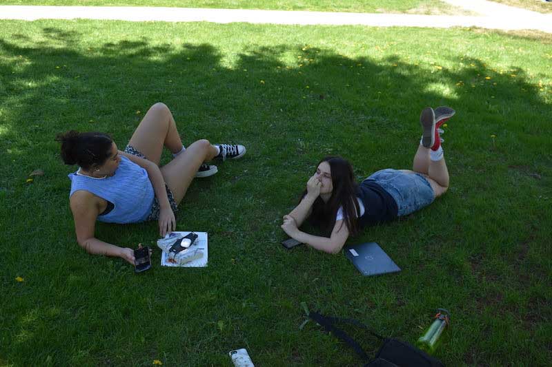 While their peers learn in a classroom setting, girls who have breaks in their schedule are found sitting in a quiet nook with a private tutor, reviewing math equations, practicing their English vocabulary, and learning new study techniques for upcoming tests. During class breaks, girls refocus, socialize, and de-stress, spending time on the lawn in front of the school, making up dances and singing pop songs.